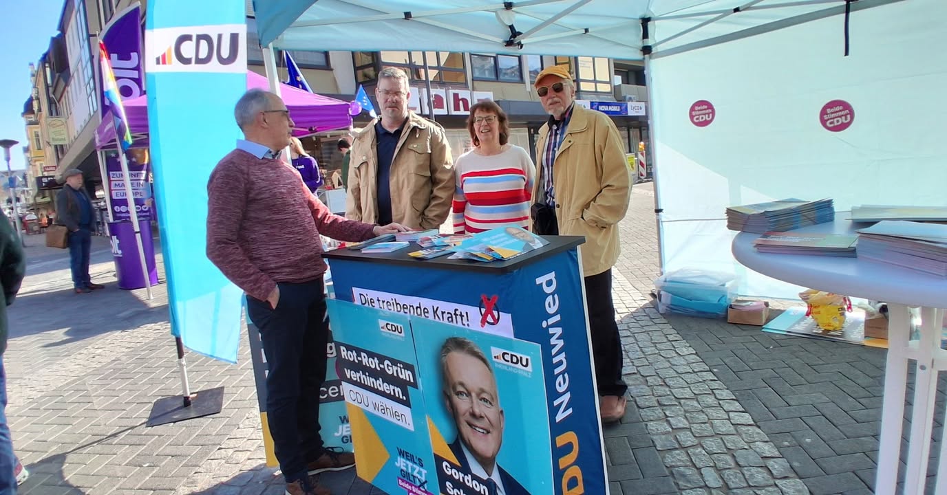 Am 21.03.2026 stand der letzte Wahlkampfstand des Stadtverbandes vor der Landtagswahl an ? und unser Ortsverband Niederbieber?Segendorf durfte diesmal die Verantwortung übernehmen. Durch die kurzfristige Verlegung der Wahlhelfer?Verpflichtung auf den Samstagvormittag fehlten uns zwar einige helfende Hände, doch Jutta, Dennis, Michael und Romed sorgten dafür, dass der Aufbau trotzdem ohne jede Hürde gelang.Im Laufe des Vormittags kamen immer mehr Unterstützer aus den umliegenden Ortsverbänden dazu. So füllte sich der CDU?Stand Schritt für Schritt mit engagierten Menschen, die gemeinsam für eine gute Stimmung und viele Gespräche sorgten.Gegen 14 Uhr packten wir alles wieder zusammen. Zum Abschluss gönnten wir uns bei Kennys noch einen letzten Kaffee ? ein kleiner Moment der Ruhe und um den Trubel hinter uns zu lassen. #weilsjetztgilt #cdu #cdurlp #neuwied